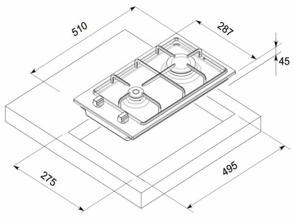 Compact Built-in Cutout Dimensions (LxW): 275mm x 495mm