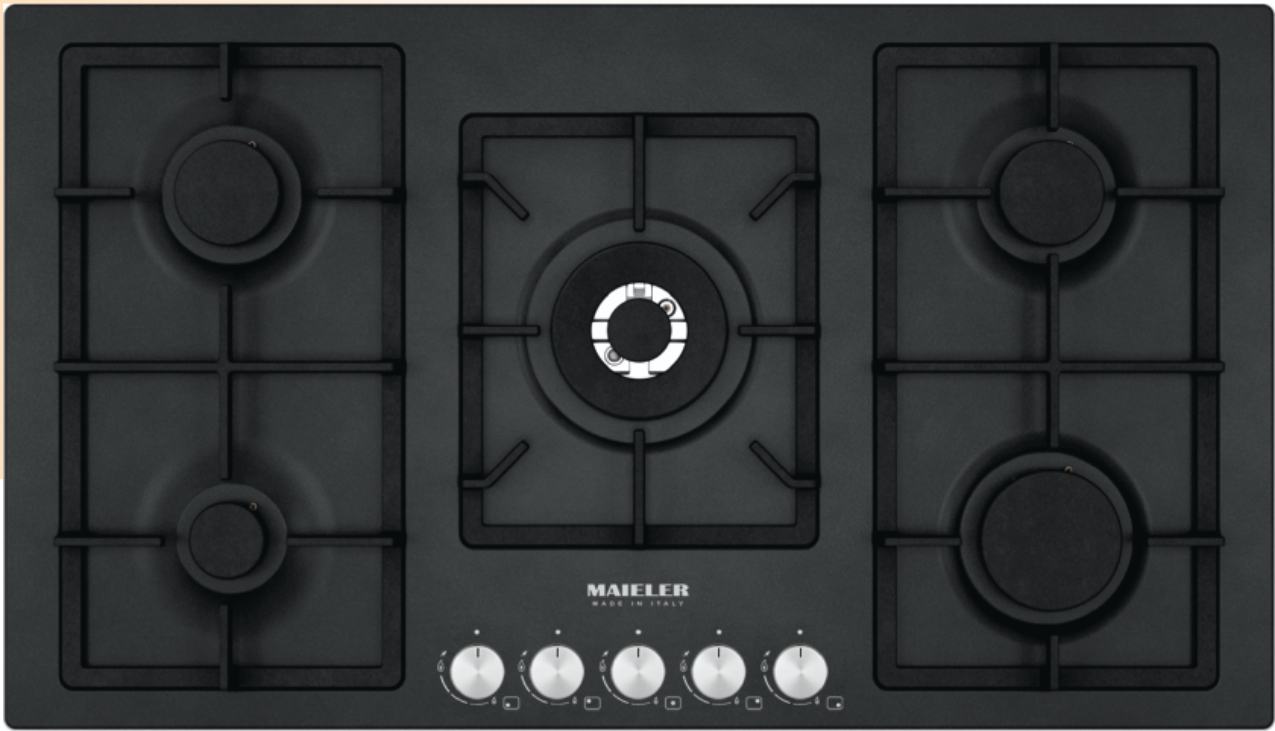 Black 90cm Built-in Gas Hob – 5 Burner with Automatic Ignition & FFD Safety